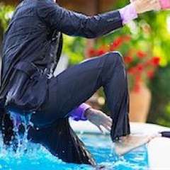 Phantazia got pulled into the pool with CathyRendon