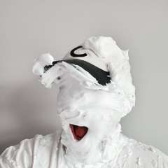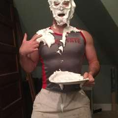 Chrissylecreme was surprised by phantazia with a big sloppy cream pie to the face